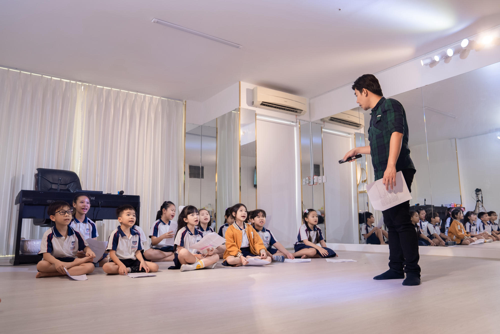 Buổi học nâng cao kỹ năng thanh nhạc của Biệt đội Tài năng Golden Voice cùng thầy Thái Duy Đỉnh – nhà sáng lập Đỉnh Academy cũng mang lại nhiều trải nghiệm đáng nhớ không kém. Dưới sự giúp đỡ của thầy, các thành viên trong Biệt đội đã cùng nhau luyện tập kỹ thuật thanh nhạc, kỹ thuật điều chỉnh âm, giữ giọng và phát âm chính xác qua bài Diamonds và Believer.